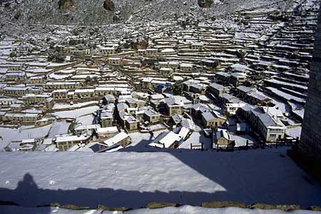 Namche to Thyangboche: The Mountain Zone Photo Tour![]() Namche Bazaar, the center of Sherpa culture in Nepal, dusted by an overnight snowstorm in its snug bowl at 11,400 feet.
