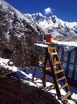 Namche to Thyangboche: The Mountain Zone Photo Tour![]() A hot shower is a welcome thing in any form on the trek. This is the set-up at the Ama Dablam Lodge midway between Namche and Thyangboche.
